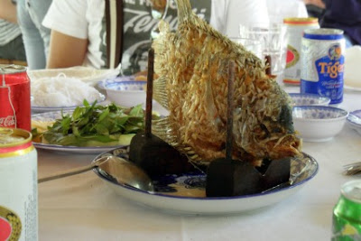 Having our first dinner at a roadside stall outside Ben Thanh Market (pictured above) after we landed in the city formerly called "Saigon".